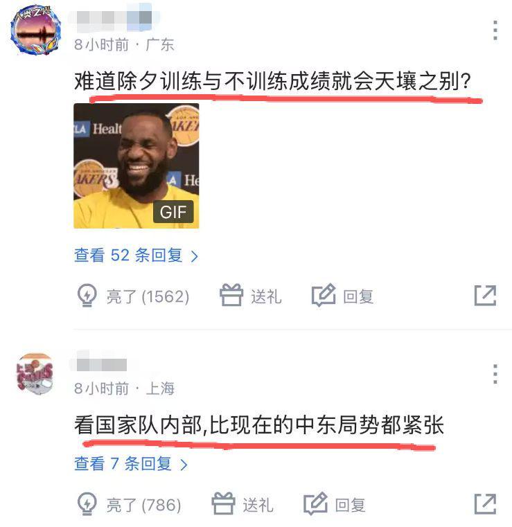 因为每次中国男篮的集训时间总是很长,战绩却不尽人意,加上这次赶上春节也未能给球员放假,这也引起了球迷的热议:“假装努力”、“难道除夕训练与不训练成绩就会天壤之别?”也有人把矛头指向郭士强,称“一将无能”。